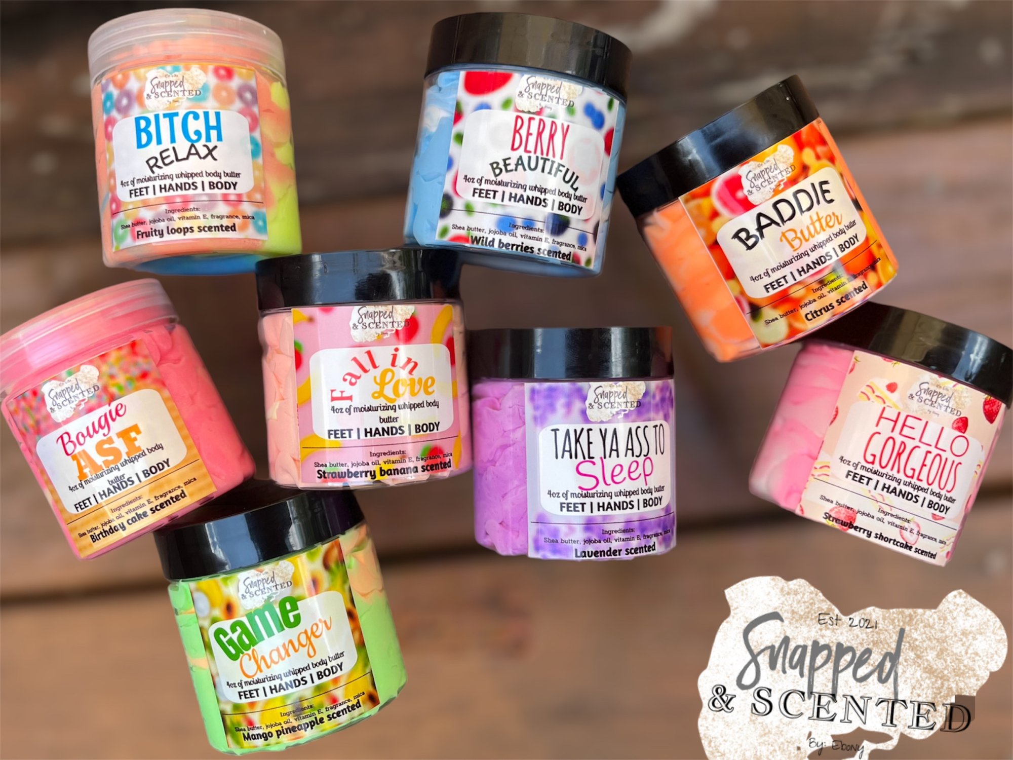 Perfect to wear on a daily basis to feel and smell AMAZING! Our body butters are filled with rich oils consisting of Vitamin E, jojoba oil, coconut oil, and shea butter perfect to hydrate skin ! They are so lovely for the skin and give the skin and amazinggg glow! Every single ingredient that I use in my butters all have healing properties to the skin. They are amazing for eczema, hyperpigmentation, redness, sunburns, stretch marks, anti aging , dry skin, and many many more. It’s literally like LIQUID GOLD for the skin✨ & you only need a pea sized amount. The butters are made up of 50% oils so that’s why I advise to only use a pea sized amount because if you use Over that then that’s when they can become really oily.